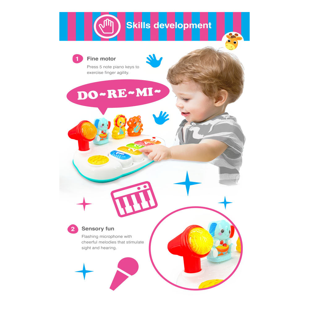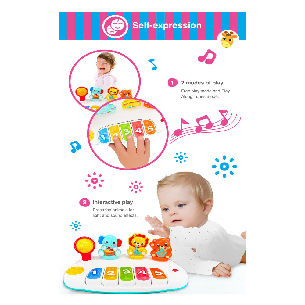 Baby animal band with 5 note piano keyboard