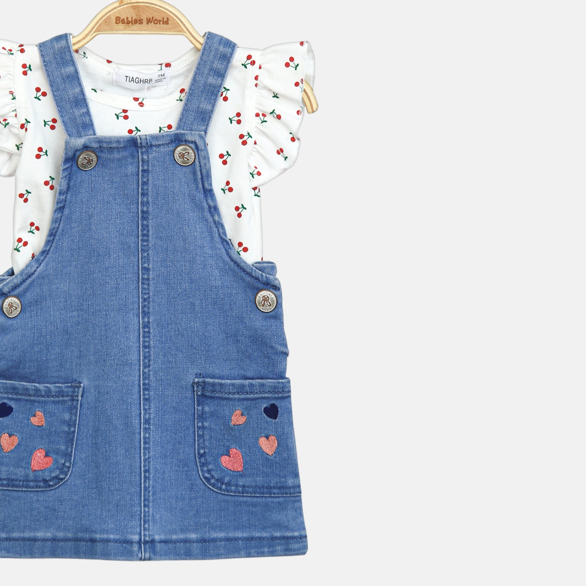 Feature: Two front patch pockets with embroidered red and navy hearts
