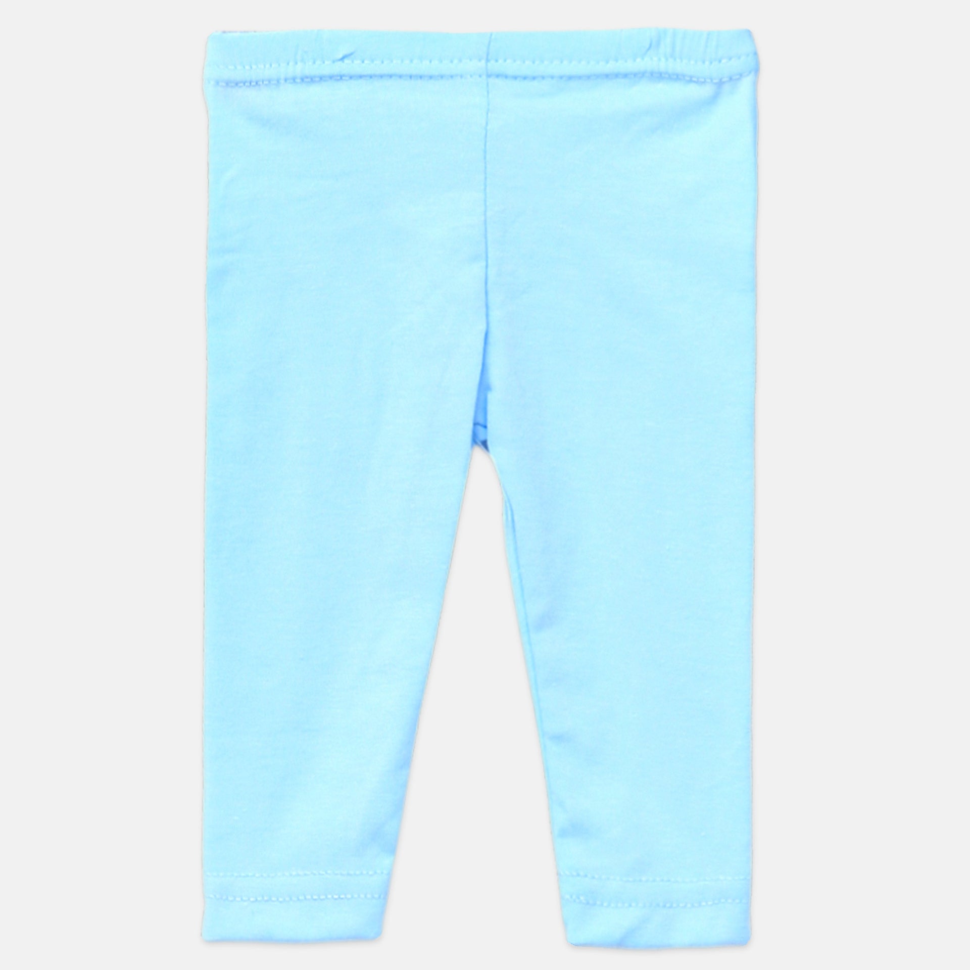 Leggings: Solid light blue full-length pants with an elastic waist.