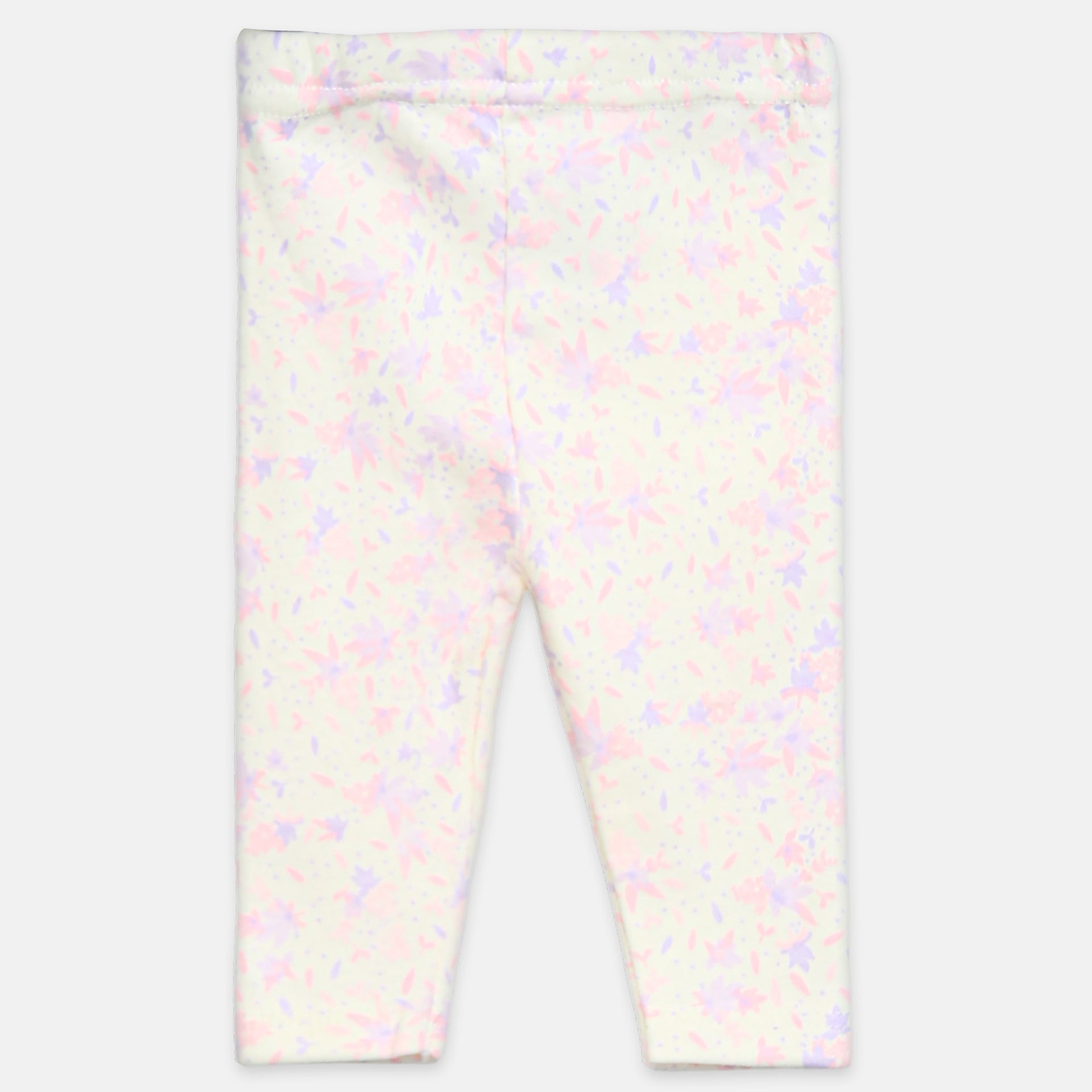 Pants: Light pink featuring an all-over floral or butterfly pattern.