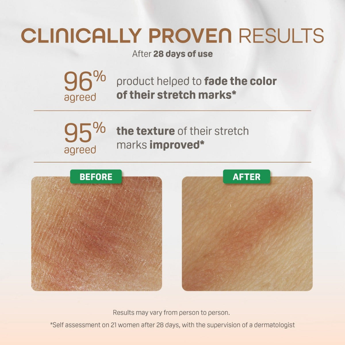 95% saw an improvement in the texture of their stretch marks