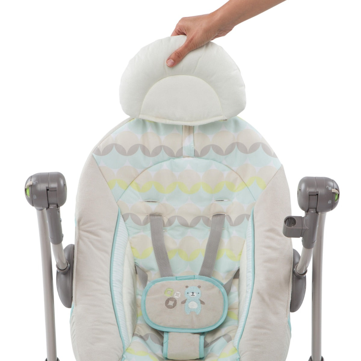 Converts from swing to vibrating seat with Easylock & Slim Fold design folds flat for easy storage or travel.