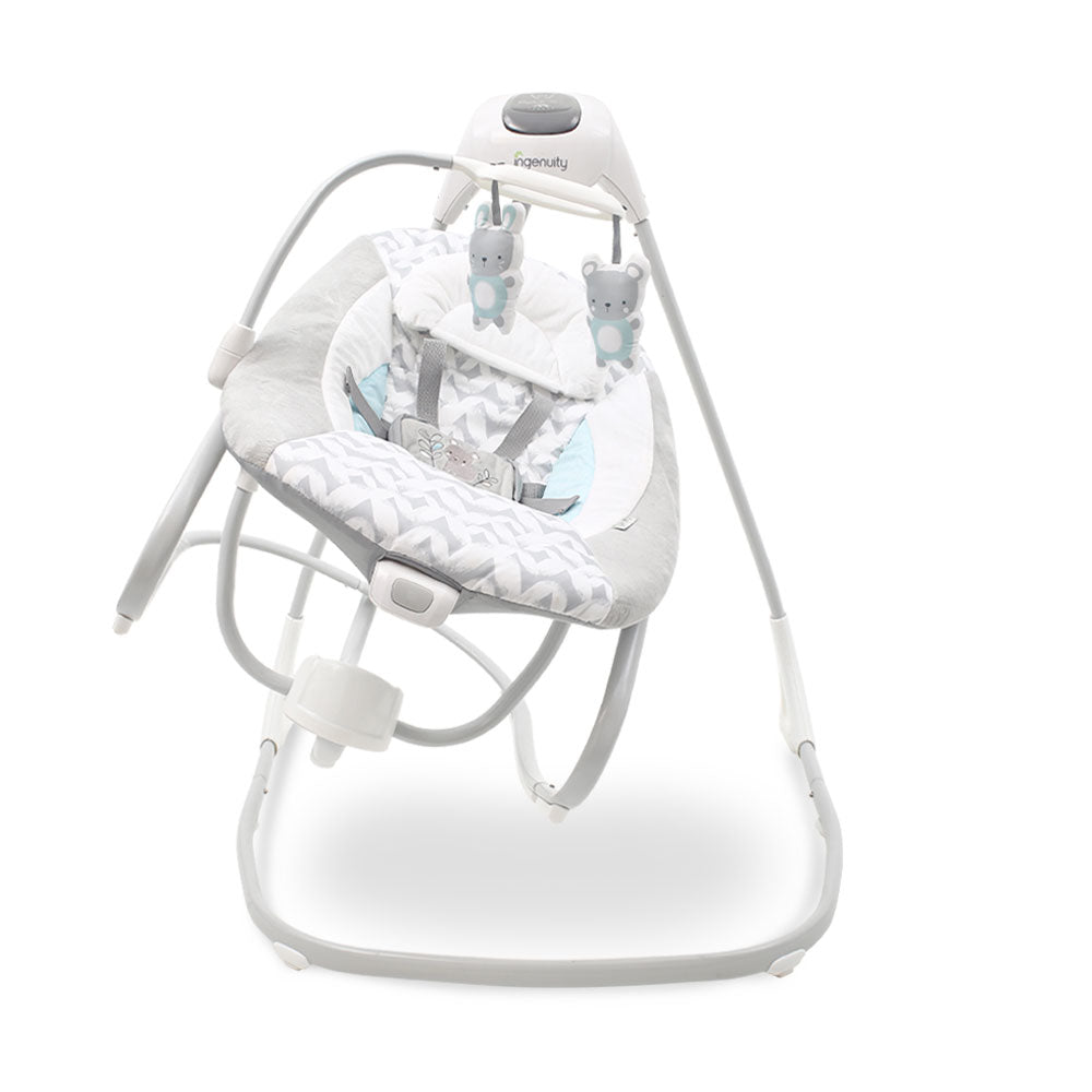 The Ingenuity Simple Comfort 2-in-1 baby swing & rocker is designed for more hands-free moments. The removable plush seat converts to a rocker
