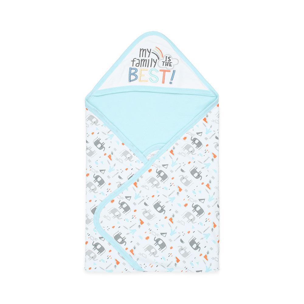 Details: A printed wrapping sheet along with patchwork on hood that'll put your little one to sleep swiftly.