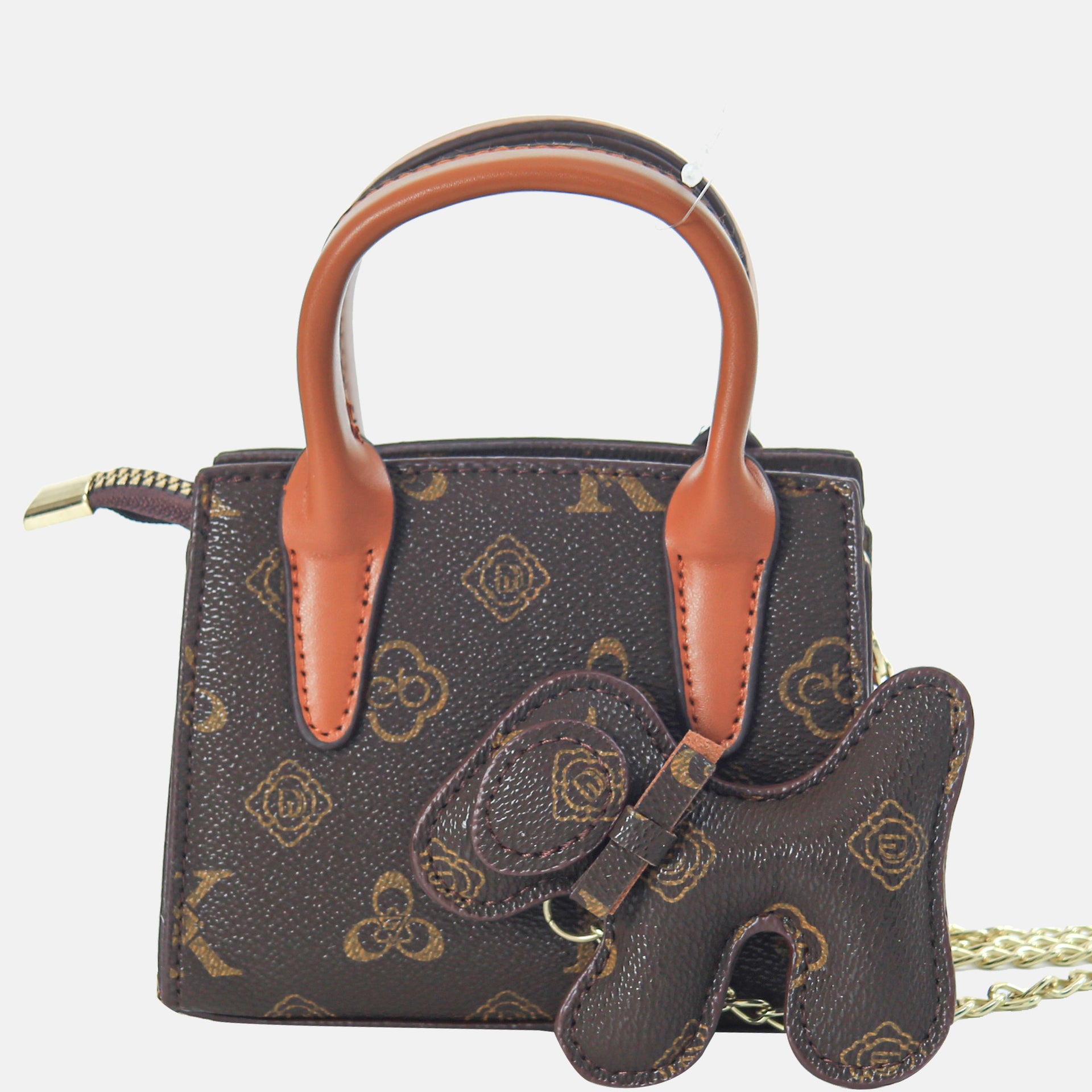 Feature: Rich chocolate brown handles and a matching teddy charm.