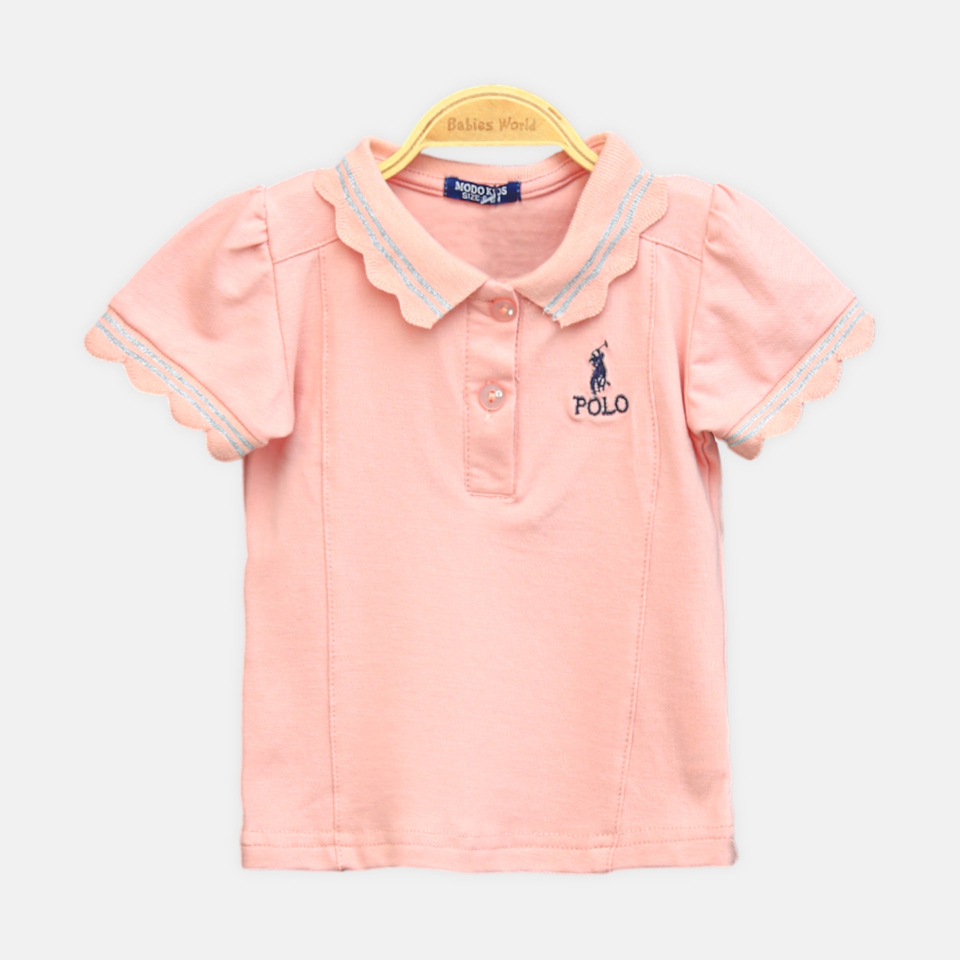 Combining the elegance of a polo with the playfulness of a skirt, this peach ensemble is the definition of "preppy cute." The unique scalloped edges and delicate embroidery make it stand out for school events or afternoon tea. Soft to the touch and easy to wear, it’s an effortless outfit for a polished look.