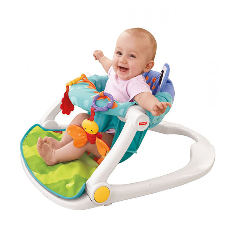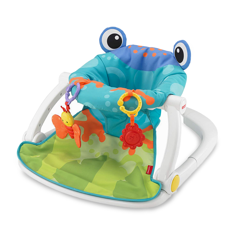 Two linkable toys include a butterfly with soft wings & a flower teether