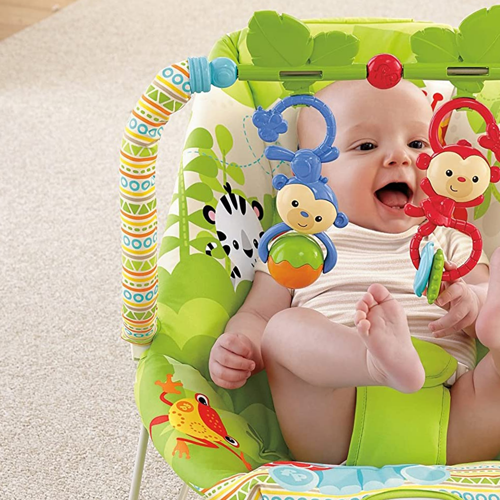Soft, removable toybar offers loads of play