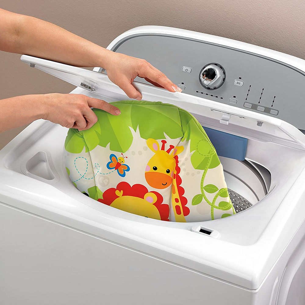 Features a 3 point fabric restraint to keep baby safe