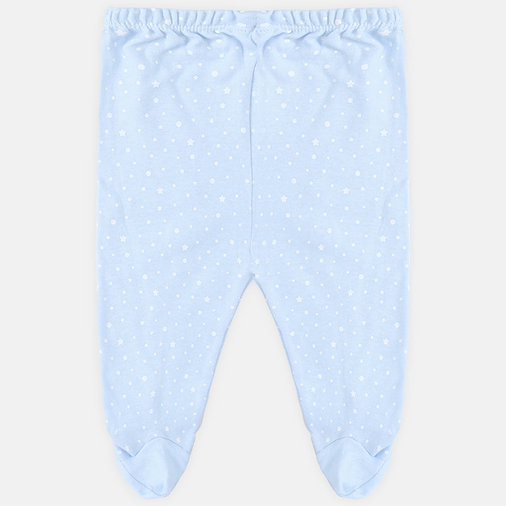 Dress your baby in this adorable blue baby suit with a yellow duck printed in the center