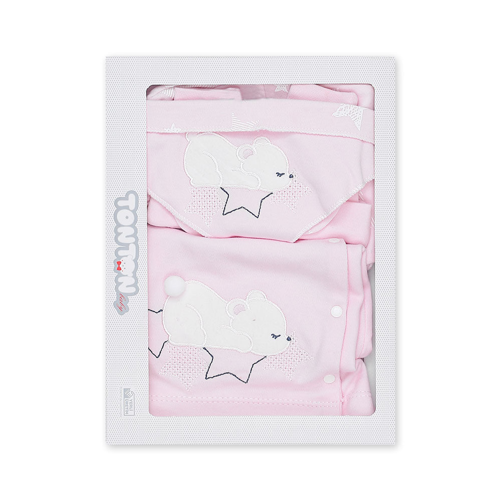 5 pcs newborn baby set made with finely knitted cotton to help protect your baby's soft skin.